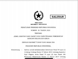Perpres Nomor 38 Tahun 2020 tentang Jenis Jabatan yang dapat diisi oleh PPPK