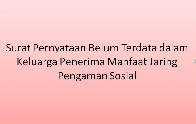 Selengkapnya: Unduh Surat Pernyataan Belum Terdata dalam Keluarga Penerima Manfaat Jaring Pengaman Sosial (PKH, BPNT, Kartu Pra Kerja dan sejenis BLT lainnya). UNDUH DISINI