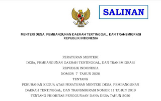 Prioritas Penggunaan Dana Desa Tahun 2020 Berdasarkan Permendesa PDTT Nomor 7 Tahun 2020